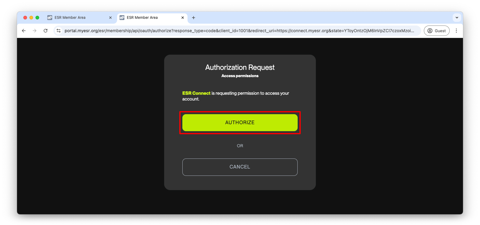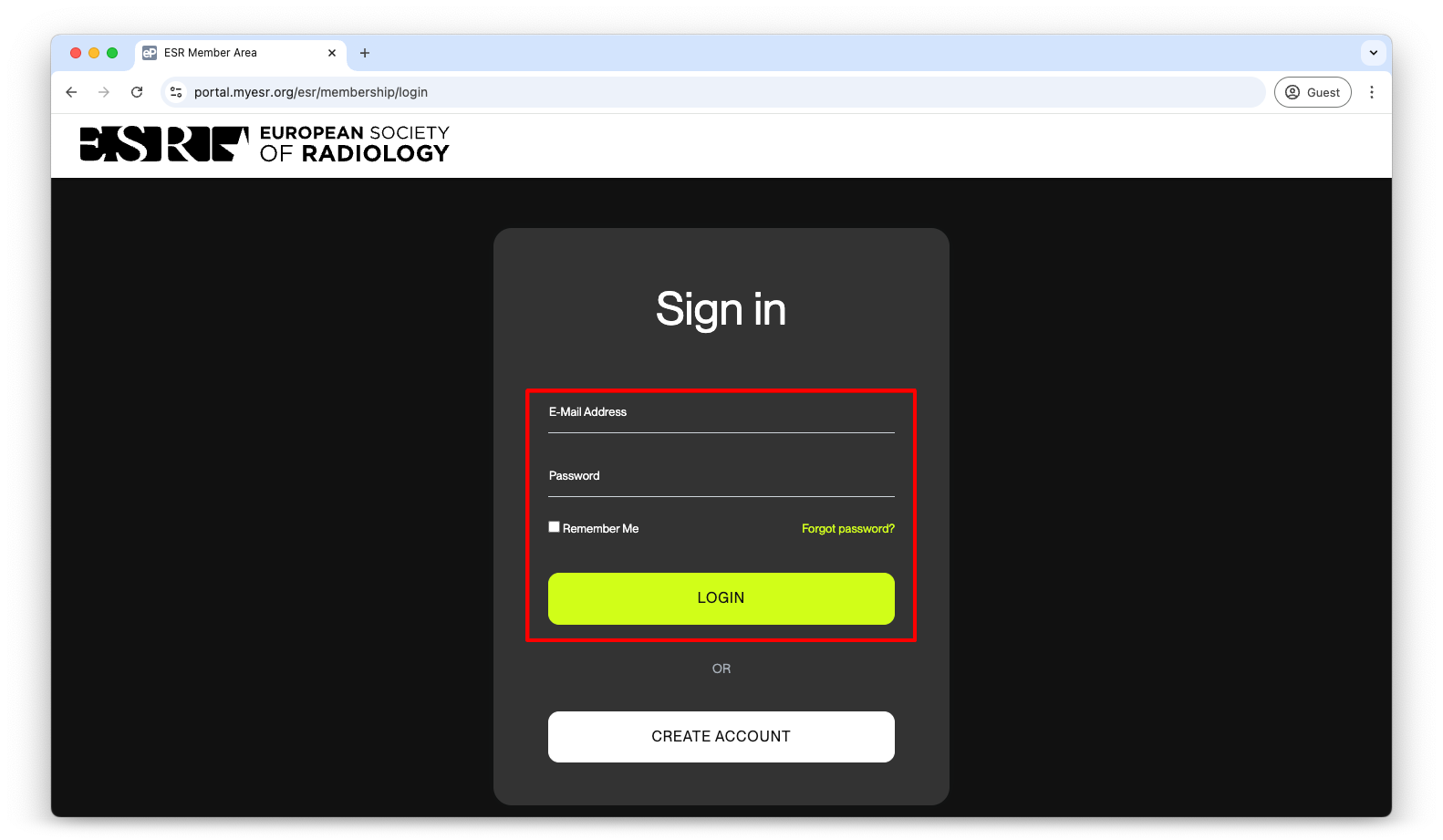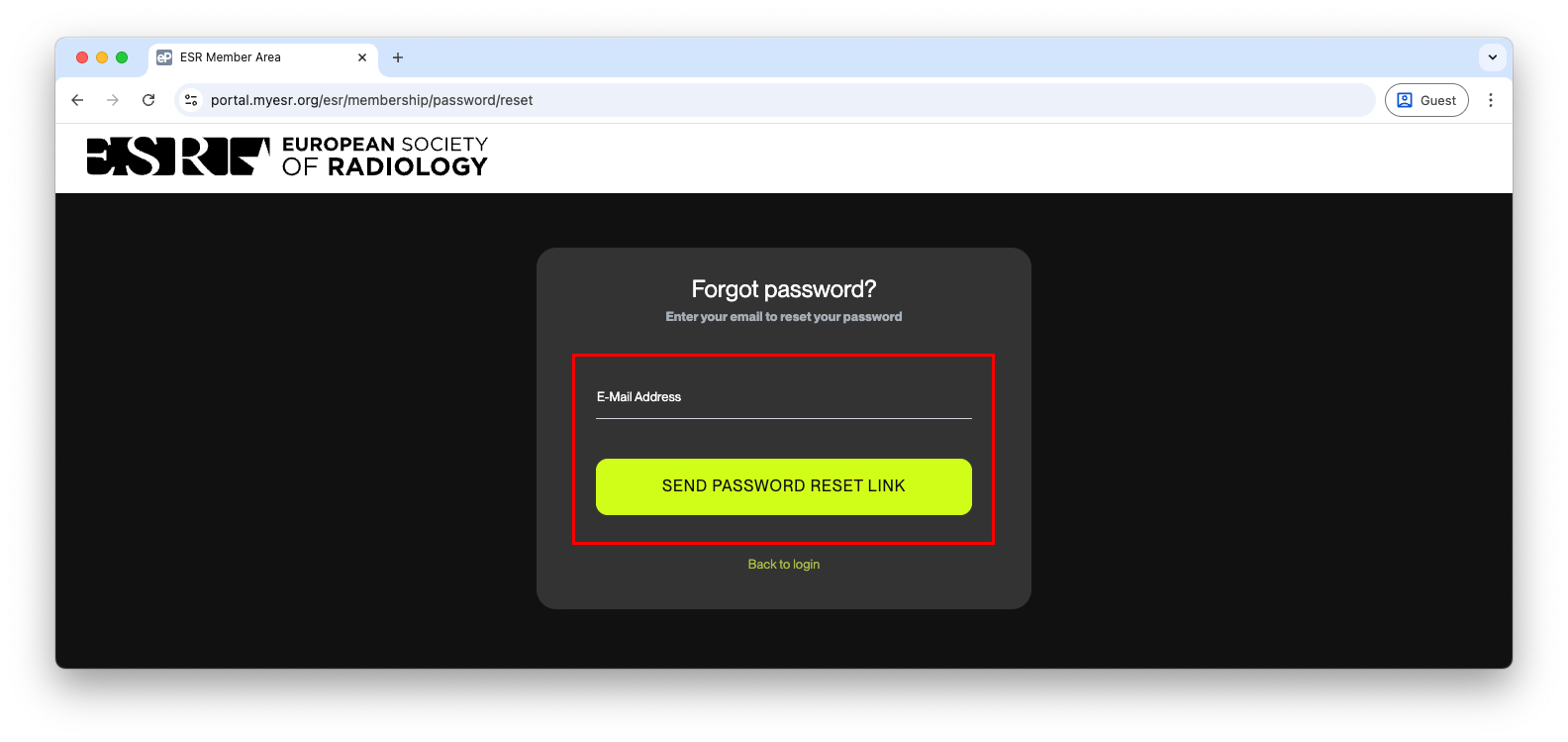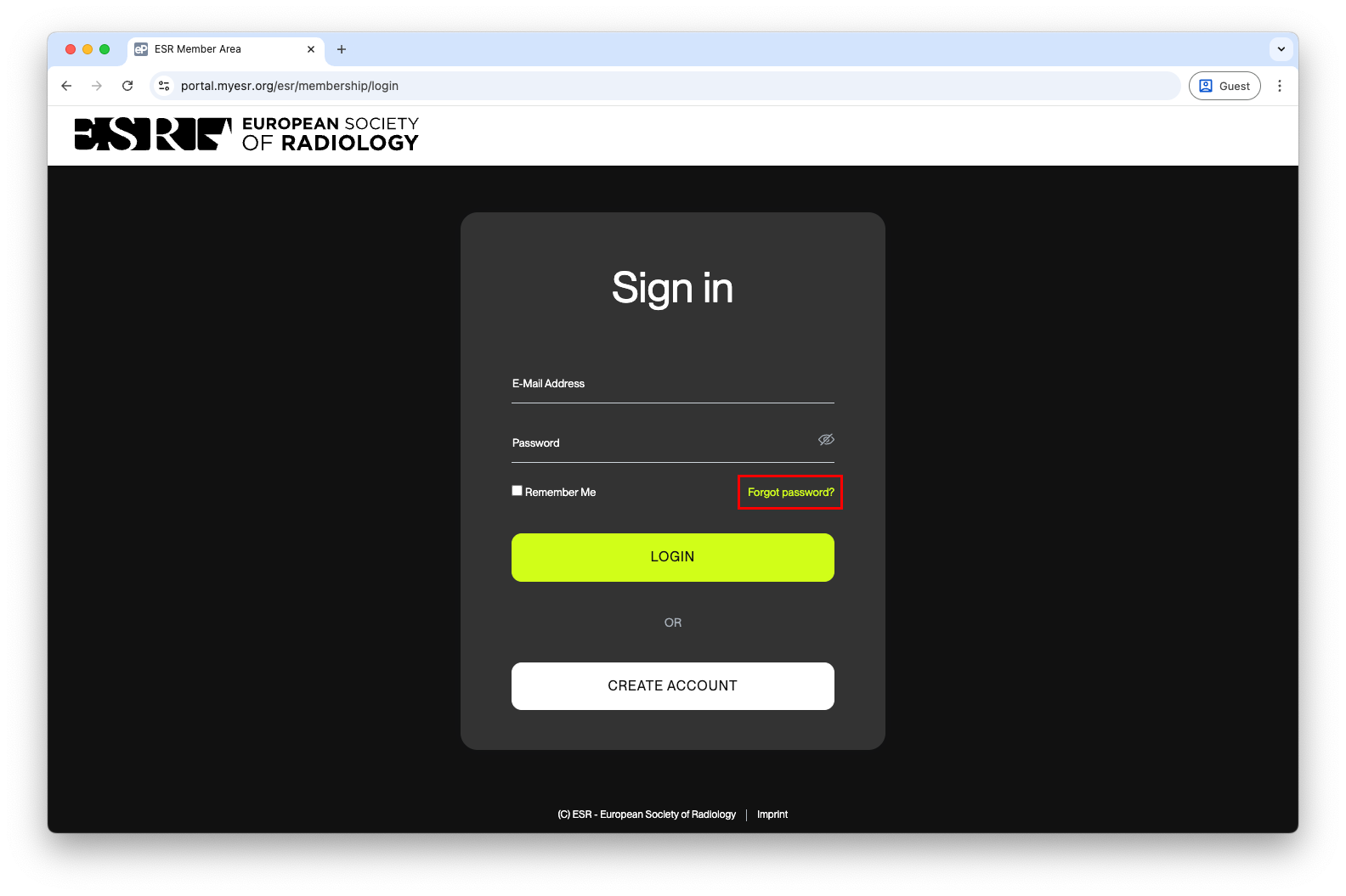 A. Click ‘Login’ in the top right corner. Login is only possible using your ESR MyUserArea credentials.