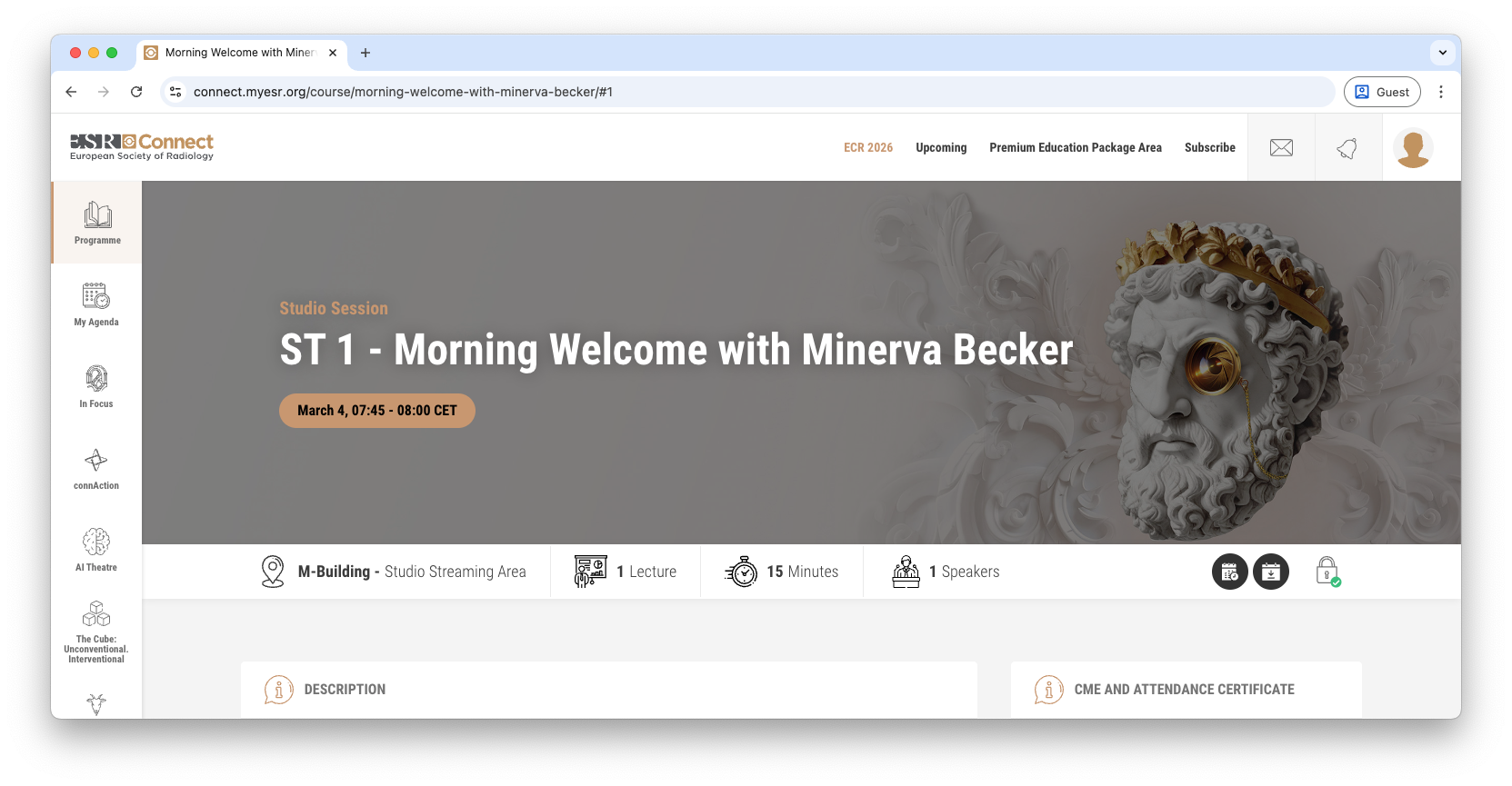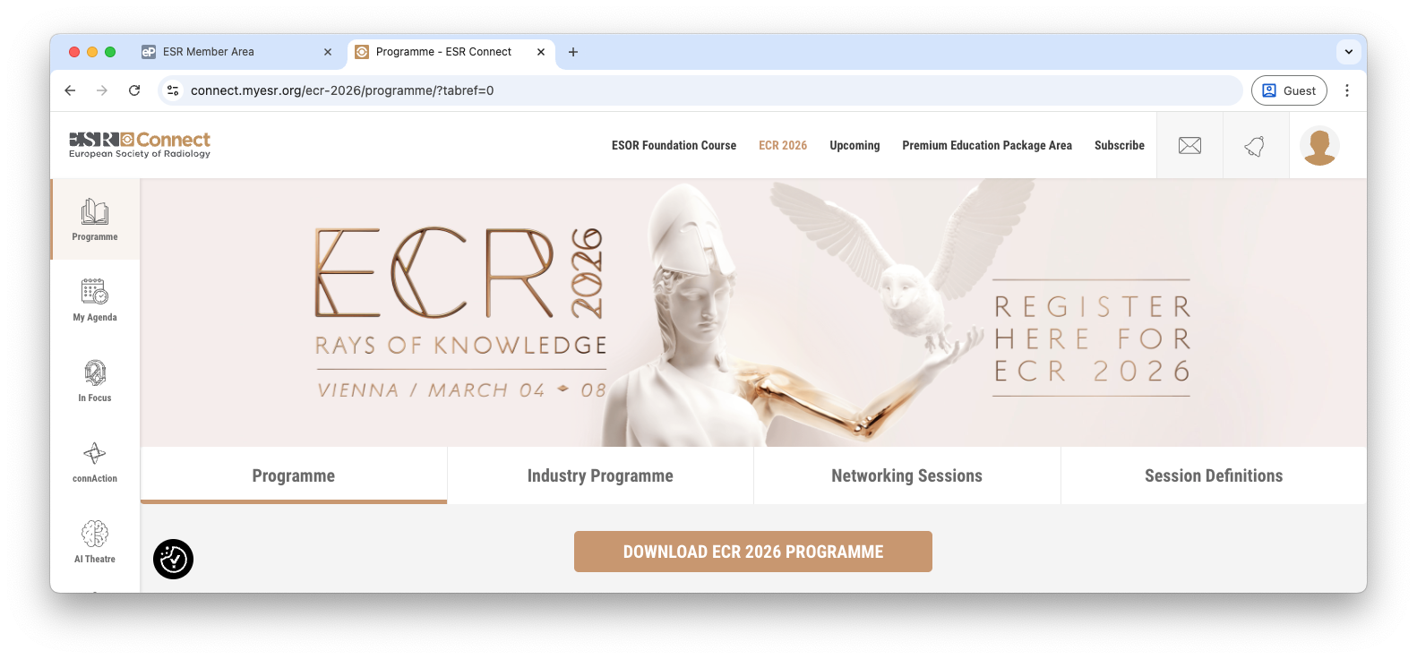 E. From March 4-March 8, ECR 2026 will take place and you will be able to watch. Sessions are accessible via Programme in the left side menu.